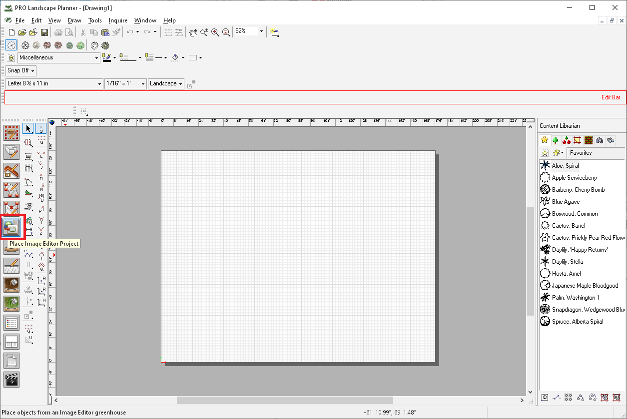 The Greenhouse tool allows you to bring plants used in Planner automatically over to Image Editor. Open a blank drawing or an existing project. Then go to the Content Explorer and click on the Greenhouse tab. The two important tabs are Open and ...